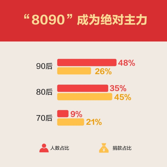 支付宝公益平台数据显示:80后90后已经成为捐赠主力。