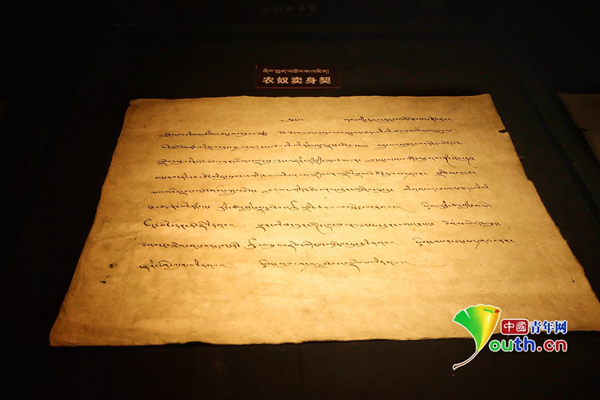 农奴卖身契。中国青年网记者 王增强 摄