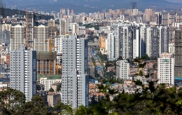 19时30分,昆明万达双塔中秋月景致(二次曝光)