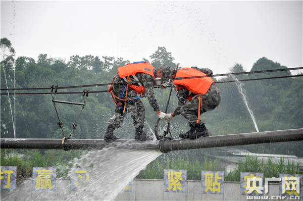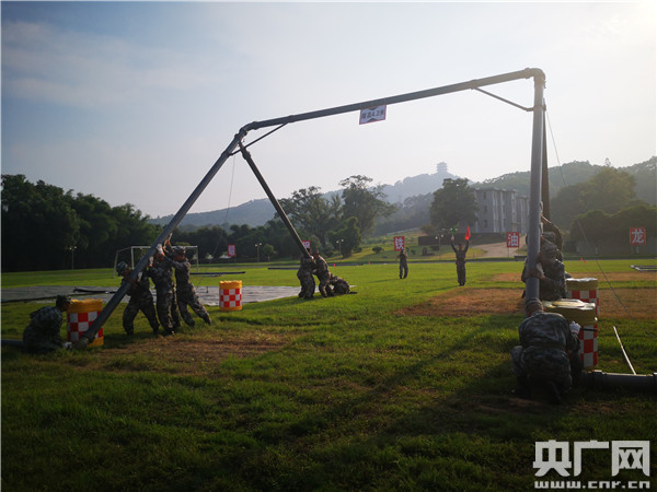 图为吴勇所在的管线团进行课目训练(央广网记者 王子衿 摄)
