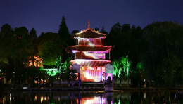昆明信息港讯 记者李金梓 用脚踩出音符的钢琴投影、荡着彩色秋千摆出美美的POSE、在泡泡屋里尽情发挥童真、抬头看乌篷船里的古典美人起舞弹琴……经过全方位升级改造,9月13日,备受市民期待的大观公园中秋灯会终于亮相了,近两万市民共度“夜大观·中秋奇妙夜”。