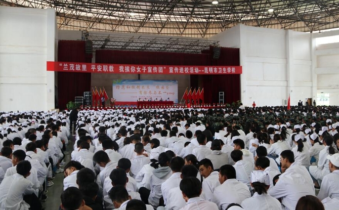据悉,9月10日以来,由嵩明县委政法委、县委宣传部牵头,县金融办、职教基地、县公安局、司法局、各大银行、云南工商学院等共同参与,组成的女子宣传团小分队正式入住职教园区每一所高校,开始为期1个月的开学季主题宣传活动,采取一封信、一次“现身说法”、一堂课、一套资料、一部“警示片”等措施为新学期学生上好安全第一课。
