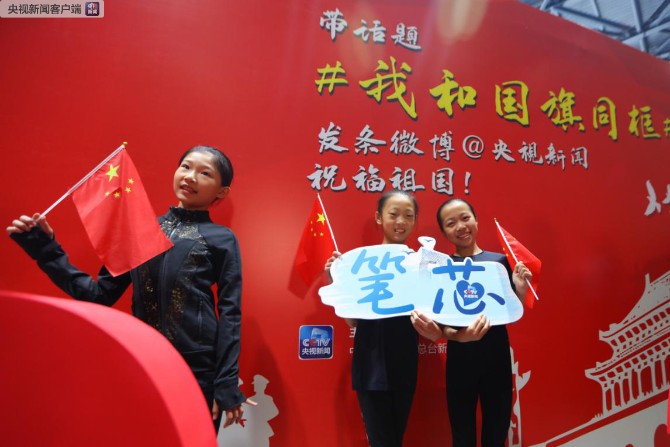 9月20日,由中央广播电视总台新闻新媒体中心主办的庆祝新中国成立七十周年特别活动“我和国旗同框”,走进国家冬季运动训练中心。正在备战2022年冬奥会的国家队冰雪健儿在训练间隙纷纷来到活动现场,与国旗同框,表白祖国。