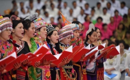 活动现场,60多名青联委员和各族各界青年代表亲手绘制包含紫荆花和云南元素的展板,表达“共同绘就香港和云南美好明天”的寓意。绘图完成后,大家高举手中的国旗,阿普萨萨委员和金梅委员带领大家用少数民族语言和汉语齐声高唱《我和我的祖国》,用饱含深情的歌声祝福祖国繁荣昌盛、明天更美好,将活动推向高潮。
