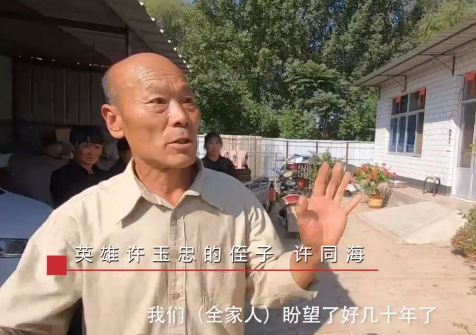 2016年,许玉忠烈士遗骸与遗物第三批回国。今年清明节,通过“寻找英雄”行动,许同海一家与烈士相认,并完成DNA鉴定。