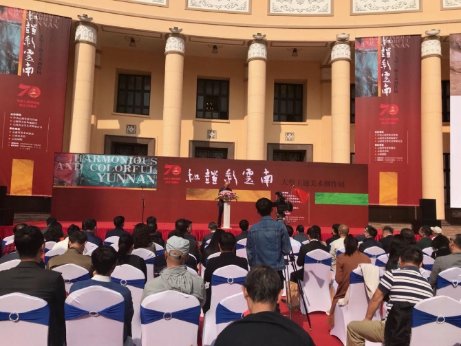 9月29日,庆祝中华人民共和国成立70周年“和谐彩云南——大型主题美术创作展”在云南美术馆开幕。