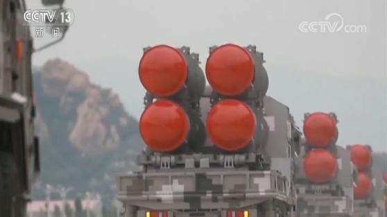 央视记者 王刚:现在陆上防空分为要地防空和野战防空,所以对于陆军部队来说,同样也要面对来自空中的威胁。近年来随着中国陆军的转型发展,陆军的红旗16B这样的新明星武器逐渐为大家所熟知,在这次阅兵当中也出现了红旗17A这样的中低空野战防空系统,这是我国自主研制的最新型的野战防空系统,它将制导雷达,还有导弹发射融合在一台车上,这样更加机动灵活,反应速度更快,成为陆军防空的杀手锏武器。