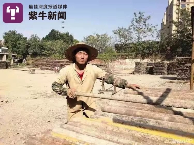 前不久,在江苏省徐州市泉山区一处脚手架工厂内,21岁的李国安熟练地操作着拆卸扳手,从钢管上卸下连接扣。从微凉的清晨,到烈阳当空的午后,李国安已经连续作业4个多小时了。他身旁的钢管架堆到1人多高,身上黄色工作服的背后早已被汗水浸湿,看起来像是刚洗出来一样。而一周以前,李国安的双胞胎哥哥李国平也以同样的装束,在这家工厂忙碌着。