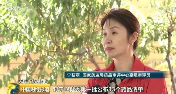 国家药监局药品审评中心高级审评员 宁黎丽: 对于卫健委第一批公布33个药品目录,我们会在第一时间进行审核,在保证产品安全有效的前提下,加快药品的上市,让老百姓用得起、用得上高质量的仿制药。