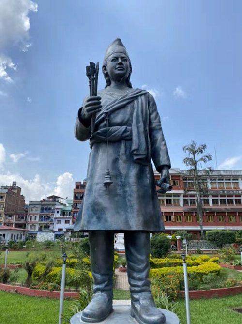 尼泊尔帕坦市的阿尼哥雕像。阿尼哥是中国元代来华的知名工艺家,已成为尼中友好的代表人物。习近平主席也在署名文章中提到了他。新华社记者张文摄