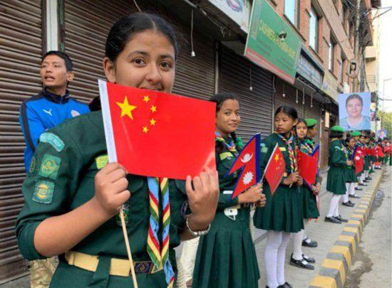 这一面面飘扬的旗帜、这一张张热情的笑脸,中印、中尼友好扑面而来。