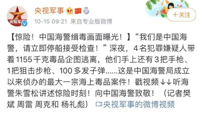 海警人员发现了一艘涉嫌走私毒品的船只。