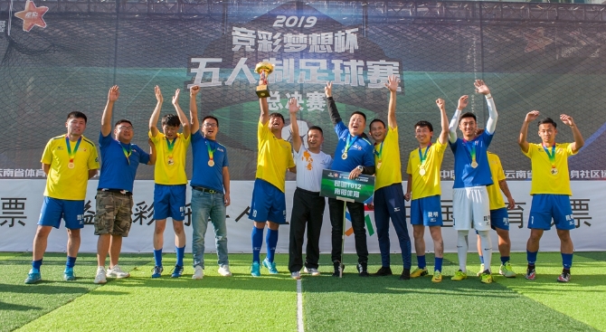 10月20日,2019年中国体育彩票“云南省全民健身社区运动会”暨“竞彩梦想杯”五人制足球赛年度总决赛在昆明落幕。经过4天的激烈角逐,最终,昆明TC012南郡体育队获得冠军。