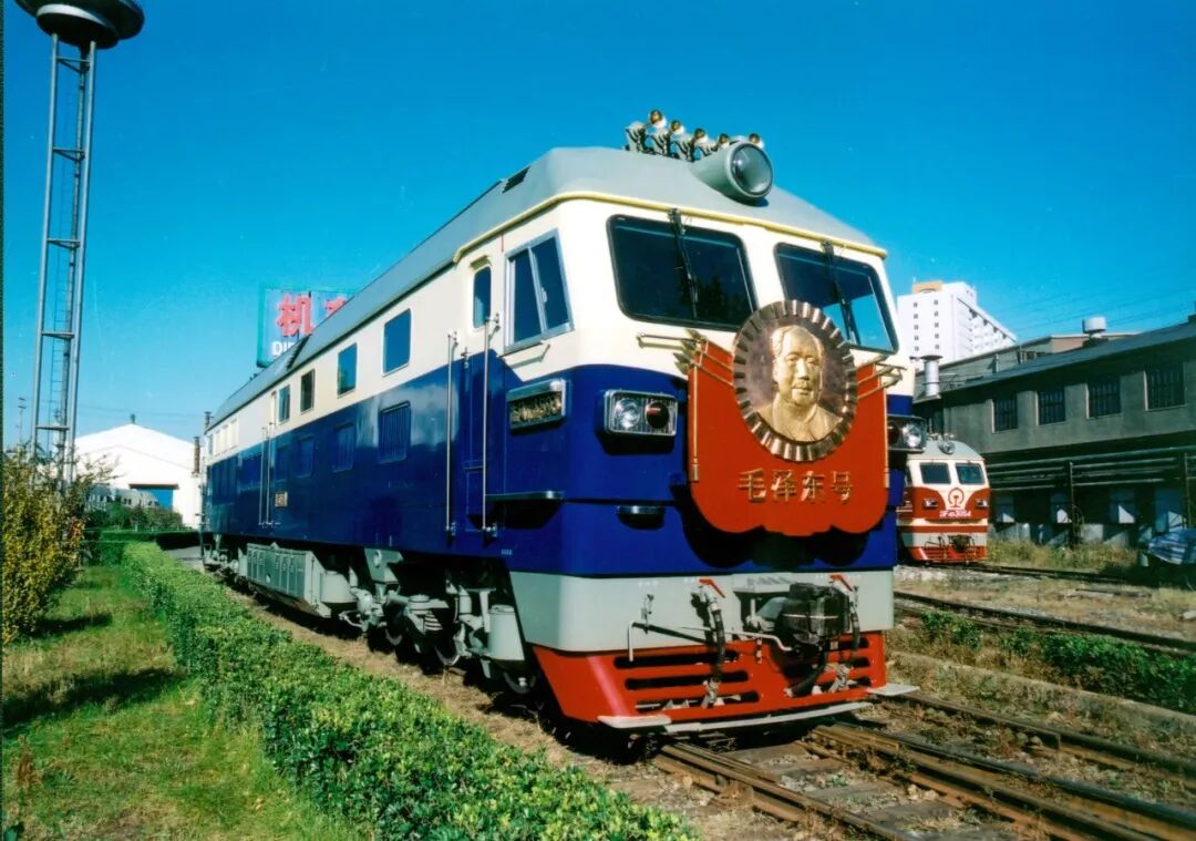 “毛泽东号”结束了三十年使用蒸汽机车的历史,开始使用大连机车制造的“东风4型”0002内燃机车。