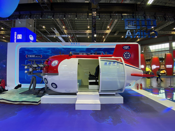中国馆展区内的深海勇士载人潜水器模型,观众可以走进去一探究竟。