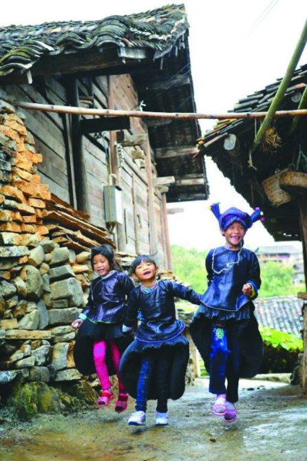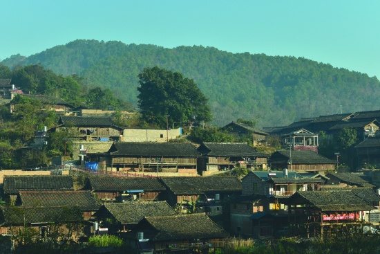 不知谁喊了一声,车在一个小山坡上停了下来,随行的人指着一条大河对面雨雾中的寨子,说那就是广南者兔马碧。那是一片依山而建、面河而居的瓦房,呈现出一种神秘的青黛色的美丽。据说这个停车的位置是拍摄马碧全景最好的角度,我身后顿时响起一片快门声,仿佛这些躲在大山皱纹里的山寨就是专为镜头而生的,每一次随意的拍摄都可以到城市的摄影大赛上获个什么奖,因为像马碧这样的寨子,看平面的图片就能嗅到空气的喷香和生态的清新。