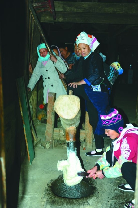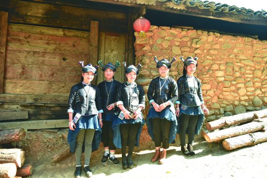 最后,我还是很好奇吊脚楼房顶的瓦片颜色,村长笑了,说当年盖房子的瓦片都是自己烧窑子制的,某一窑火力不够瓦片就烧不透,就成了夹生的土红色,舍不得丢弃就都盖到房顶上去了。我顿悟,这一定是许多年前的某个夜晚,负责凑柴加火的壮族小伙被壮家阿妹的山歌逗得心痒痒,悄悄跑出去“哦尼囔哦尼比”地对了一晚上山歌,天亮时回来,呕嗬,窑子火熄了,瓦片没烧透。这是一次爱情的山歌行动,唱出了壮族青年的浪漫和热情,却暗淡了瓦窑的炉火,造就了今天马碧吊脚楼房顶乌黑青黛中的点点红色,也是一种千古绝唱。