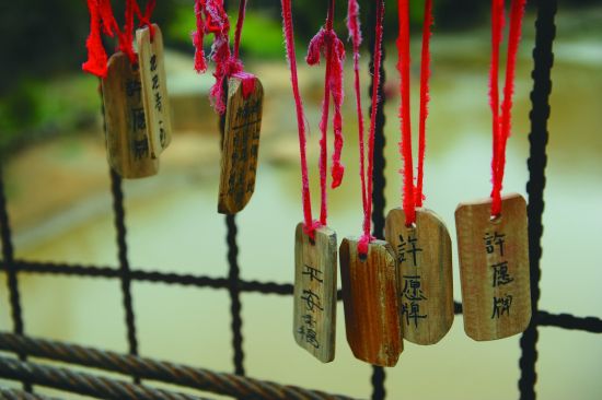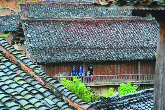 拍照仍在继续,我却突然发现马碧高高低低的瓦房顶上居然夹杂着些土红色的瓦片,在一片青黛色中点缀着似有似无的红,恍若印象派的油画,色块的变化颠覆了山水写意的马碧风光。想着走着就到了寨子门口,要过一座吊桥才能进入马碧,桥的门楣上写有“千年壮寨”四个大字,同伴们一步就上桥过去了,我抬起的脚却一阵犹豫,这一跨,或许就跨越了马碧的千年历史……