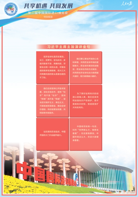 第二届中国国际进口博览会5日在上海国家会展中心开幕。国家主席习近平出席开幕式并发表题为《开放合作 命运与共》的主旨演讲。“共同把经济全球化动力搞得越大越好、阻力搞得越小越好”“坚持‘拉手’而不是‘松手’,坚持‘拆墙’而不是‘筑墙’”“中国市场这么大,欢迎大家都来看看”……习近平主席的主旨演讲铿锵有力,一个个金句打动人心,引发各界人士热议。