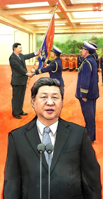接过习近平总书记授予的队旗