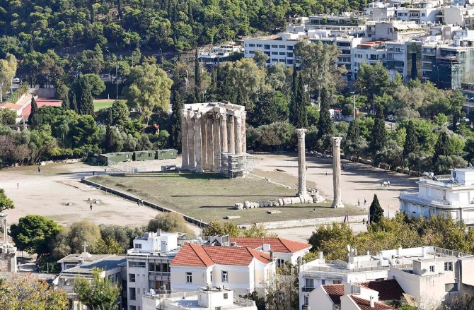 雅典。卫城脚下。希腊总统府、总理府附近街道已悬挂起两国国旗,迎接习主席来访。