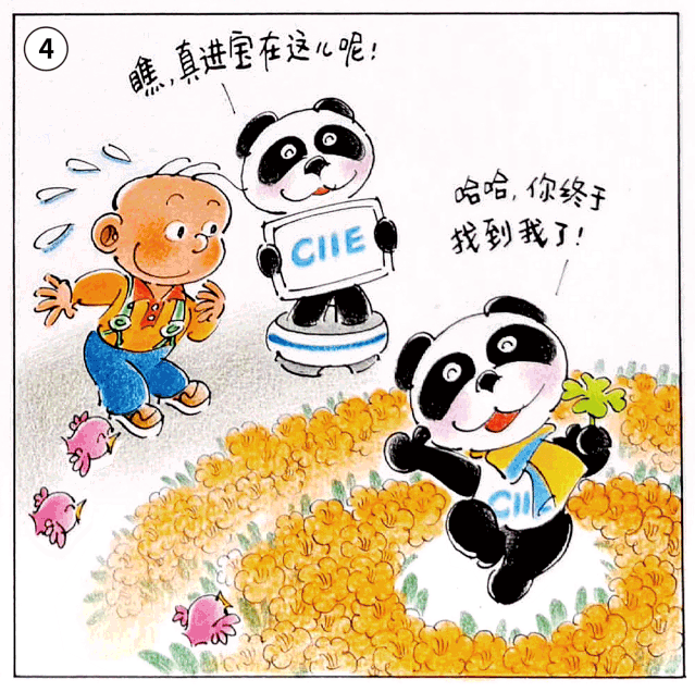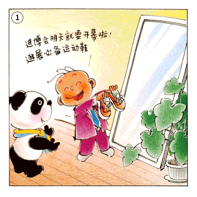 第一宝:运动鞋。想看更多展品,就要走更多片“叶子”,脚力要够强。只是……三毛上身西装革履,下身却是运动鞋,这身搭配惹得进宝在一旁捂嘴偷笑。三毛毫不在意,反而“教育”起好朋友来:“这届进博会的展区面积更大了,一双轻便的运动鞋绝对是参展体验的加分项!”