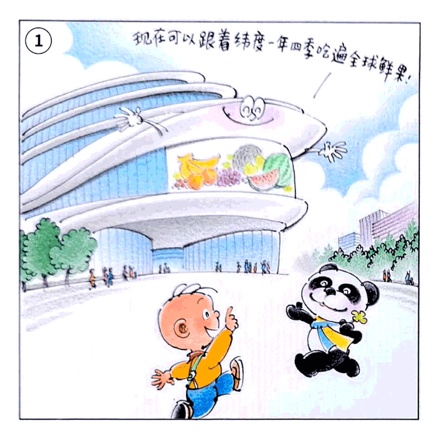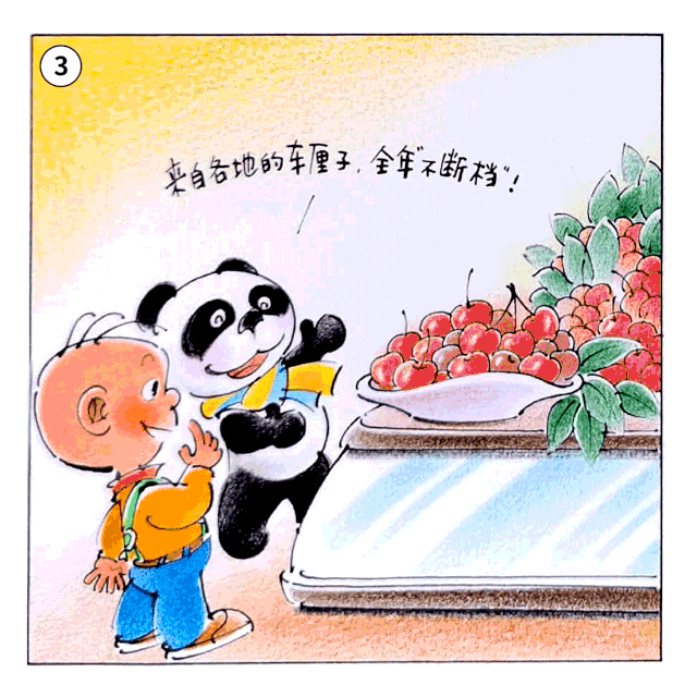 意大利血橙、马来西亚猫山王榴莲、土耳其樱桃、南非葡萄柚……听说这些水果都是首届进博会后首次进入中国市场的水果,三毛巴不得立即尝个遍。这不,看到自己最爱吃的车厘子,三毛急忙抢了两盒放进购物车。“三毛别急,现在车厘子全年不断档!”进宝告诉三毛,产自大连、山东等地的国产大樱桃每年4月至6月上市,之后,美国、加拿大的车厘子刚好接上档期,智利、澳大利亚和新西兰车厘子成熟期则从11月填补冬季市场缺口,全球鲜果想吃就吃!