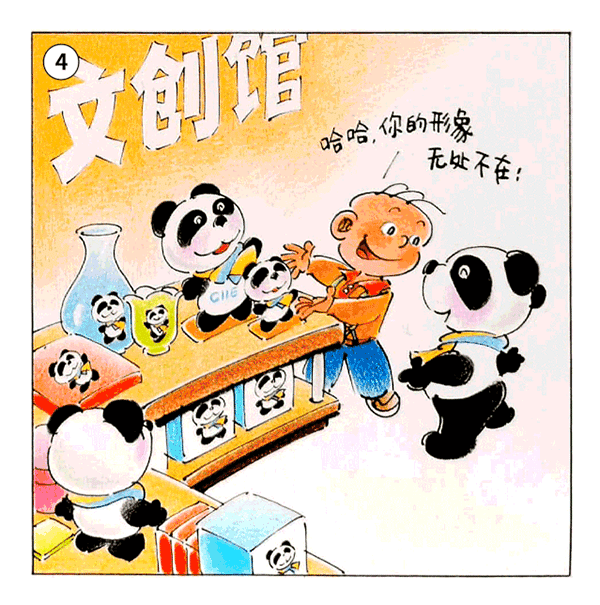 好朋友不见了,三毛有点着急,到处问人:“你见过进宝吗?”路人告诉他,进宝就在不远处的文创馆里。三毛一头扎进去一看,进宝的形象被做成明信片、胶带、书签、冰箱贴,甚至被扮成京剧造型印在了T恤上,可这些都不是他的好朋友。