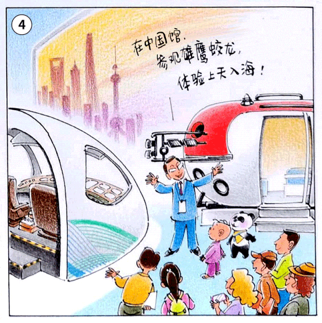最赞还数中国馆!三毛在这里“驾驶C919飞上蓝天”,又操作“深海勇士”号深海“作业”。从虚拟现实到刷脸支付,从人工智能到裸眼3D屏,充满魔力的高科技让三毛“一饱眼福”。