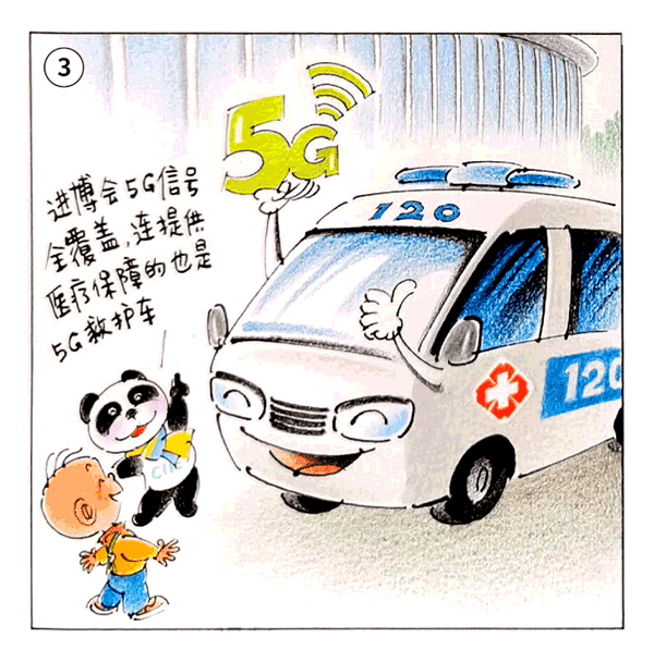 “你的5G手机也有用武之地了,”进宝告诉三毛,进博会周边已开通5G基站85个,实现核心城区5G室外覆盖。进博会定点医院从去年的18家增至33家,距离最近的医院10分钟就能抵达。