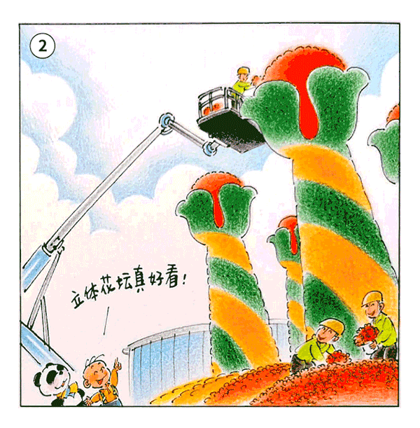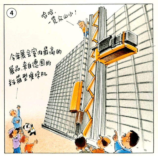 哎!展馆里面怎么还有观光电梯呀?原来是德国永恒力的Miniload无人全自动料箱堆垛机,把三毛高高抬起。三毛兴高采烈地说:“这下我最高了!”