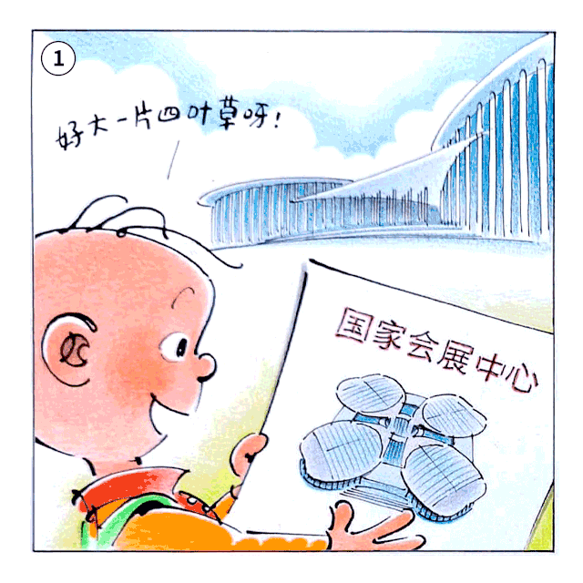 三毛来到国家会展中心,实地“打卡”感受盛会气氛。从空中俯瞰,银色“四叶草”映入眼帘,气势恢宏的四片叶面以崭新面貌喜迎四方宾客。