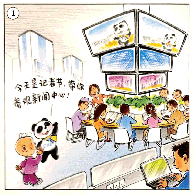 记者节这天,进宝带三毛来到进博会新闻中心参观。三毛一进门就被这里紧张又忙碌的氛围“震”住了。记者们或在电脑前“奋笔疾书”,或扛着摄像机“健步如飞”。虽然忙到“爆炸”,但依旧神采奕奕。要知道,进博会这场国际盛会吸引了超过4300位中外媒体记者。