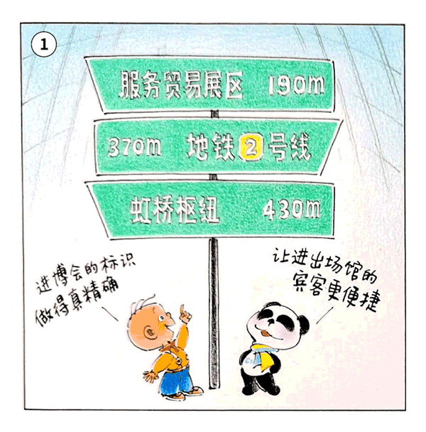 看到三毛吃惊的模样,进宝忍不住提醒他不要大惊小怪。为了进博会的成功顺利举办,服务保障工作早早就启动了。这不,为了让“路痴”也能在国家会展中心找到方向,现场除了6600多个固定标识外,新增的大会临时标识就有近1000个。它们变得更完善、更科学、更人性化,随时准备好为展客商指路。