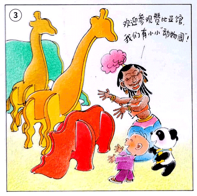 秘鲁展台纵横交错的丝线绘制出色彩斑斓的上古神兽。神树Yunza下,三毛与可爱的羊驼合影自拍。而赞比亚展台变身成为了森林“动物园”,当地特色动物的雕塑使整个展台显得生气勃勃,充满趣味。