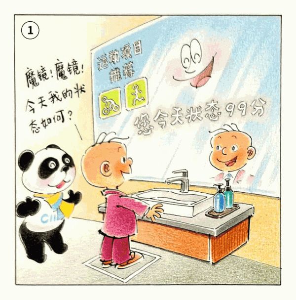 马桶、镜子、洗手台……这个展台俨然就是一个卫生间。“这里藏着什么‘玄机’?”三毛走入其间,左右打量。突然,镜子“说话”了!原来,三毛只要站在特定区域,暗藏的体组成测量仪就会测量各项健康数据,并显示在镜子上。这面“魔镜”还会建议你,今天做什么运动、吃什么。