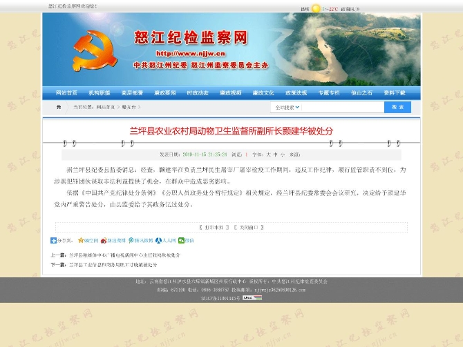 兰坪县农业农村局动物卫生监督所副所长颢建华被处分