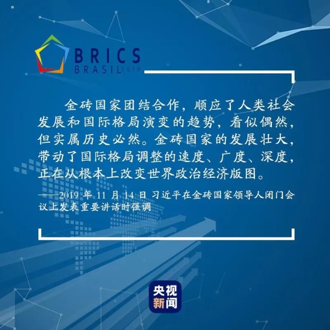 11月的巴西利亚,草木葱茏,气候宜人。当地时间2019年11月12日晚,阔别五年之后,习近平主席再次来到巴西,出席金砖国家领导人第十一次会晤。