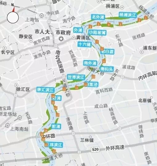 在黄浦江东岸,从上海杨浦大桥到徐浦大桥22公里的公共岸线中,每隔1公里就有1座供市民休息、休闲的驿站,这就是望江驿。