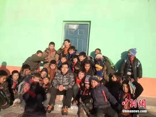 戴豪杰在维吾尔族孩子们中间。受访者供图