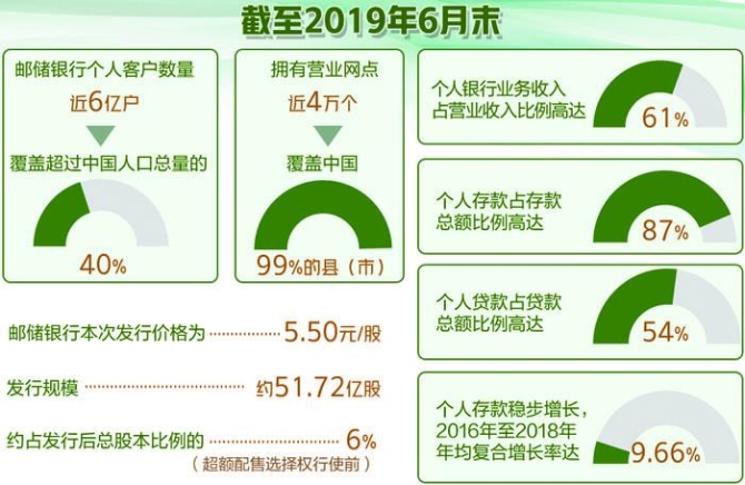 招股说明书显示,邮储银行本次发行价格为5.50元/股,发行规模约51.72亿股,约占发行后总股本比例的6%(超额配售选择权行使前),全部为公开发行新股,不设老股转让。
