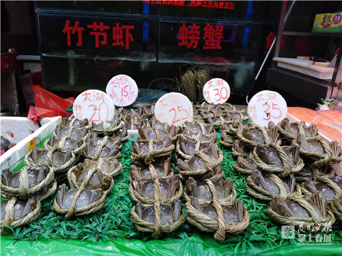 除虾降价外,记者注意到,海鲜市场大闸蟹价格也出现了下调,现大闸蟹为90元/公斤至120元/公斤,2.5公两的大闸蟹为25元/只至35元/只,1.5公两的大闸蟹为15元/只至20元/只。