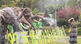 在中国云南亚洲象种源繁育及救助中心附近,“象爸爸”王国兵带领亚洲象越过一条小溪(11月12日摄)。2008年11月建成的中国云南亚洲象种源繁育及救助中心为西双版纳丛林中遭遇困难的野象提供庇护港湾。中心有30多位被称作“象爸爸”的专业亚洲象护理人员,照顾受助野象起居。他们迄今已参与救助23头野生亚洲象。从事亚洲象护理工作的一位大象医生说:“我们‘象爸爸’的最终目的是通过照顾与护理,让野象回归自然,因为那里才是它们的家”。在“象爸爸”的照料下,野象们大多走出创伤阴影,重获新生,还交到了人类朋友。新华社记者 李芒茫/摄