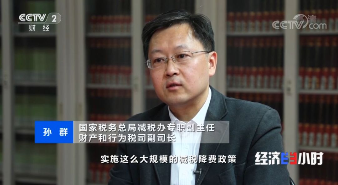 国家税务总局减税办专职副主任、财产和行为税司副司长 孙群:实施这么大规模的减税降费政策,主要目的就是要着眼未来,应对经济下行压力,提升国内市场信心,激发市场的主体活力,增强企业和百姓的获得感。