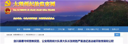 剑川县看守所管教民警、公安局刑侦大队原大队长张树胜严重违纪违法被开除党籍和公职