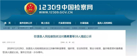 2019年11月29日,弥渡县人民检察院依法以涉嫌寻衅滋事罪、强奸罪、非法拘禁罪、聚众斗殴罪、敲诈勒索罪对聂勇富等18人提起公诉。案件正在进一步办理中。