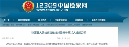2019年11月29日,弥渡县人民检察院依法以涉嫌寻衅滋事罪对王德华等10人提起公诉。案件正在进一步办理中。(掌上春城 记者毕群)