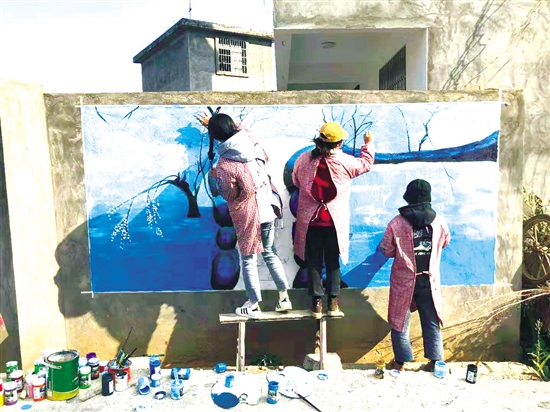 老师们带着学校的嘱托和责任担当,充分发挥所长,结合当前脱贫攻坚对人居环提升及乡村美化的要求,在槐花、海田自然村相关小组适宜道路边的田坎、民房上绘制了7幅200余平方米的精美墙画,书写标语10多条。(昭通日报 通讯员杨达普 刘坤业)
