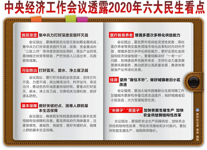 新华社北京12月12日电 保障和改善民生是经济社会发展的出发点和落脚点,也是全面建成小康社会的核心要义所在。12月10日至12日在北京举行的中央经济工作会议提出,明年是全面建成小康社会和“十三五”规划收官之年。围绕人民群众关心的热点问题,这次会议提出了诸多民生举措。