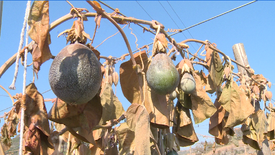 记者来到砚山县维摩乡郑泽伟家的白百香果种植地里看到,这片曾经长势很好的百香果树已经全部枯萎,开放的花朵已经被冻干,部分七成熟的百香果也被冻坏绝收。乡农业综合服务中心的技术人员正在向他做灾后思想工作,并指导开展前期补救。郑泽伟告诉记者,这次的天气影响太大了,连续六七天的霜冻天气,他家今年种植的14亩百香果全部被冻死,无一幸免,希望每亩120元的保险能挽回一点损失。同样,维摩乡百香果种植户谭发平很无奈地告诉记者,自己今年也是第一次种植百香果,20元一棵的苗,政府补助5元,一共租了33亩地种植。由于自己管理到位,百香果长势很好,大部分都已经挂果,眼看就要丰收了,却没想到会受到霜冻灾害,损失很大。